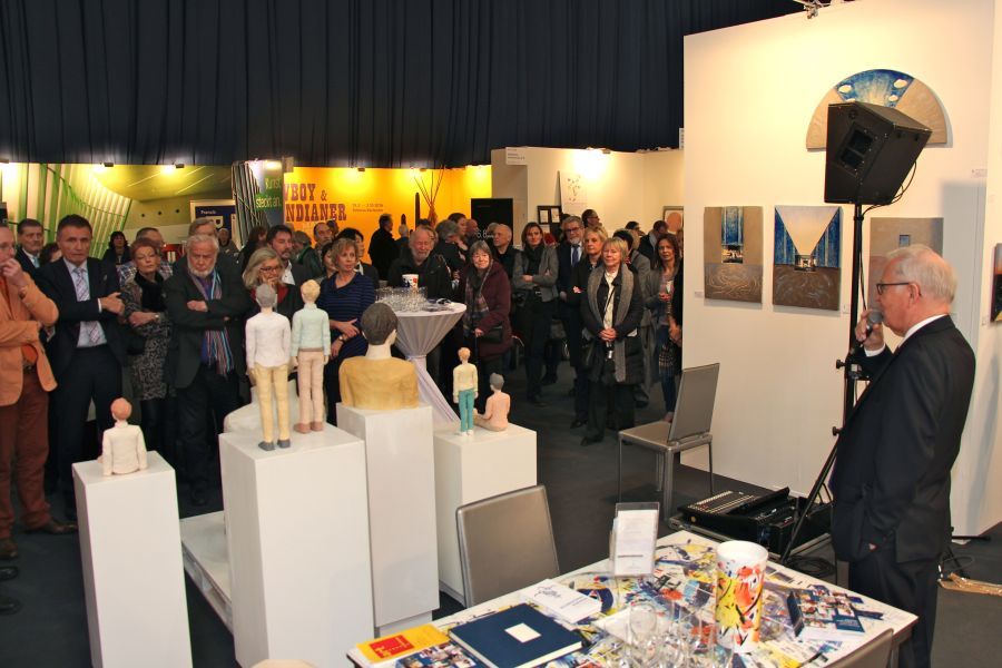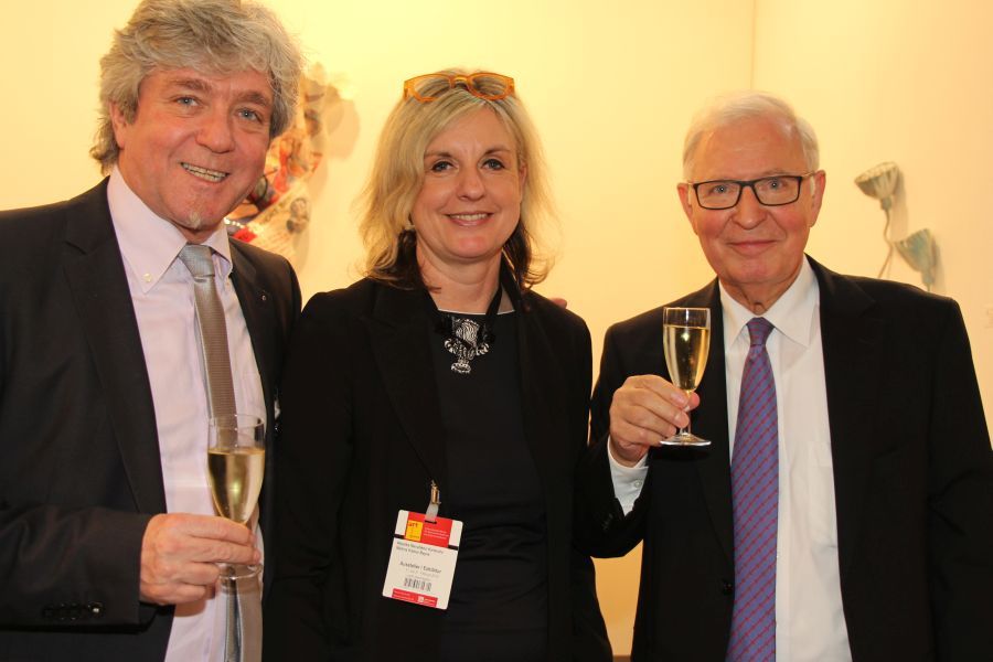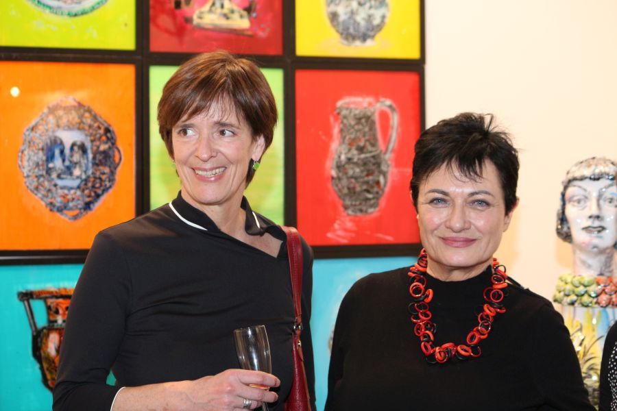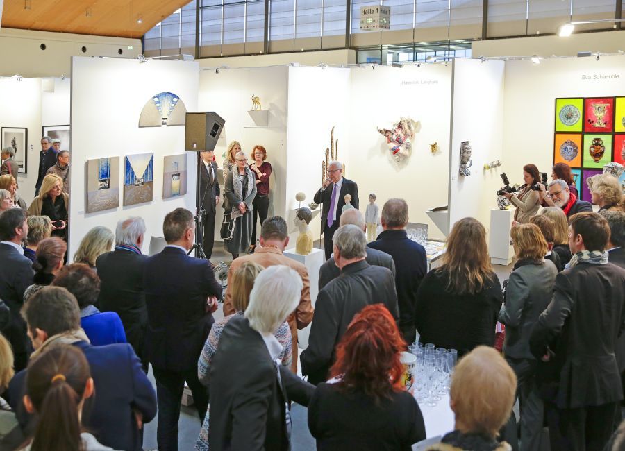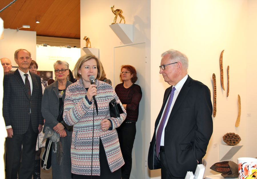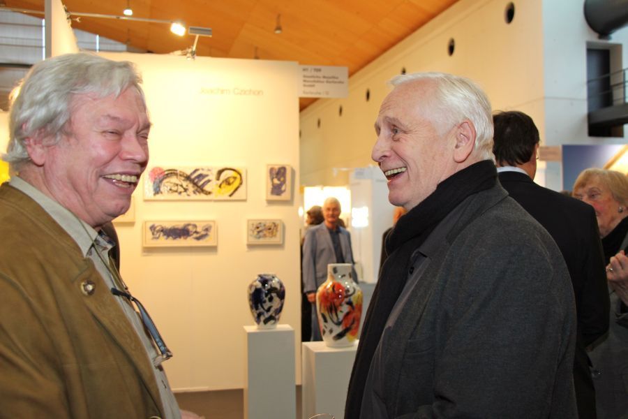 Auch in diesem Jahr nutzte die Majolika das attraktive Forum der „art“, um die neuesten Keramik-Arbeiten ihrer Künstlerinnen und Künstler zu präsentieren. Unter ihnen waren Stephan Balkenhohl, Joachim Czichon, Hiromi Fujiwara, Hannelore Langhans, Sybille Onnen, Eva Schaeuble, Franziska Schemel, Enno-Ilka Uhde und Günter Wagner. Beim traditionellen art-Empfang der Majolika-Stiftung hatten die Gäste Gelegenheit zu interessanten Begegnungen und anregenden Gesprächen. In seiner Begrüßungsansprache dankte Stiftungsvorstand Klaus Lindemann allen Künstlerinnen und Künstlern, aber auch den engagierten Mitarbeiterinnen und Mitarbeitern der Keramik-Manufaktur unter der Leitung von GmbH-Geschäftsführer Dr. Dieter Kistner für ihre wertvolle Arbeit. Trotz derzeit eingeschränkter Produktionsmöglichkeiten und schwieriger Rahmenbedingungen wegen des hohen Sanierungsstaus an dem über dem 100 Jahre alten Gebäudekomplex und zwei fast 20 m hohen einsturzgefährdeter Kamine am Ahaweg gehen, wie Klaus Lindemann betonte, die Arbeiten in der Manufaktur konsequent weiter. Man warte jetzt auf die seit Monaten zugesagten Machbarkeitsstudien von Stadt und Land, die eine Perspektive über die künftige Nutzung des Gesamtareals beinhalten sollen. Ihrerseits arbeitet die Majolika an einem tragfähigen, zukunftsorientierten Fortführungskonzept.