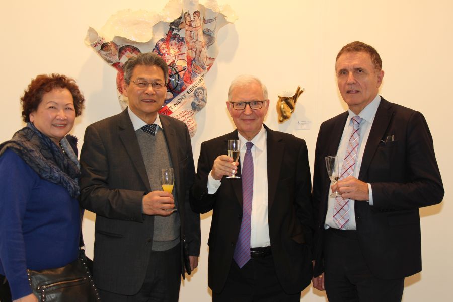 Neben den Künstlerinnen und Künstler Sabine Brand Scheffel, Clapeko, Joachim Czichon, Hiromi Fujiwara, Uta und Peter Gautel Barbara Jäger und Omi Riesterer, Hannelore Langhans, Sybille Onnen, Michael Rickelt, Eva Schaeuble, Franziska Schemel und Enno-Ilka Uhde konnte Klaus Lindemann unter den zahlreichen Ehrengäste u.a. begrüßen: die Landtagsabgeordneten Bettina Maier-Augenstein und Katrin Schütz, die Stadträtinnen und Stadträte Lüppo Cramer, Elke Ernemann, Karl-Heinz Jooß, Dr. Albert Käuflein, Eduardo Mossuto und Dr. Thomas Müller sowie die ehemalige Stadträtin Doris Baitinger. Außerdem: Kurt Bickel, DRK-Vorsitzender, Bernhard Burger, Vorsitzender des Verein Sonnenfächer Karlsruhe e.V., Lars Dragmanli, Robert W. Huber, IHK, Karlsruhe, Helmut Kaul, Rechtsanwalt, Siegfried und Elke Kreiner, Klaus-Peter Retzbach, Treuhand Südwest GmbH, Peter Schmitt, ehemals Landesmuseum, Ewald Schrade (art-Kurator), Klaus Schroth, Rechtsanwalt, Helga Witkowski, ehemalige Majolika Geschäftsführerin und Rainer Wimmer, Geschäftsführer der Gartenstadt.