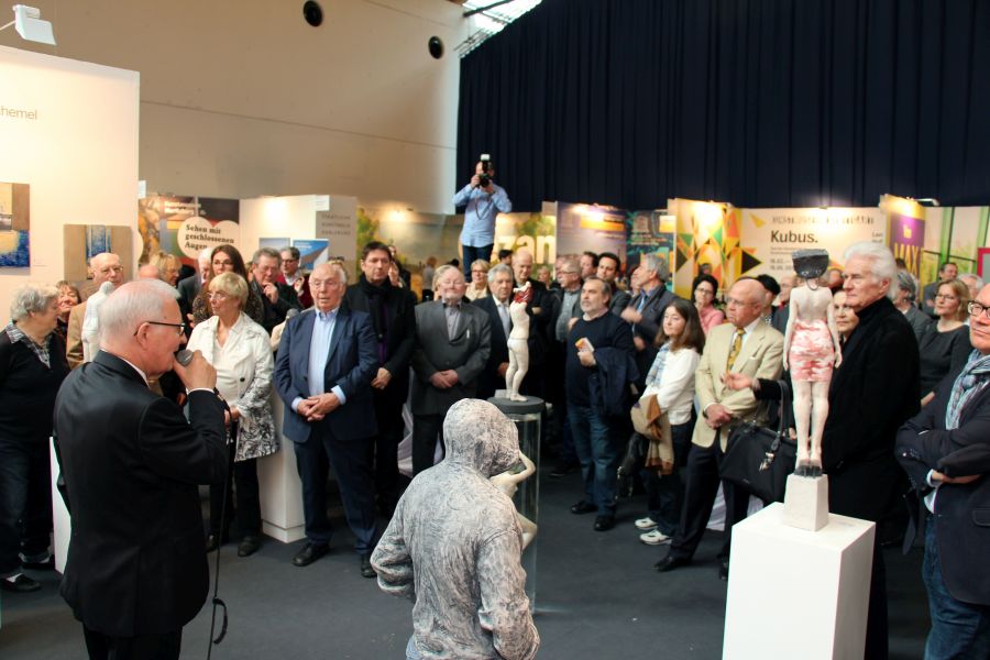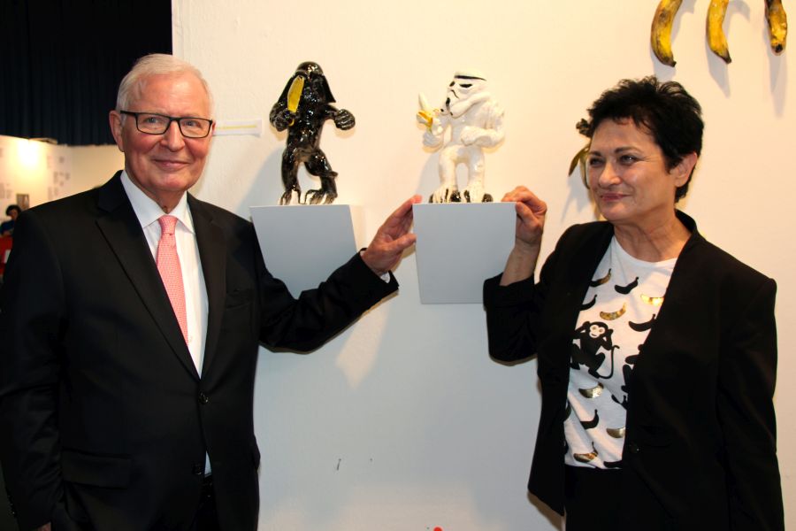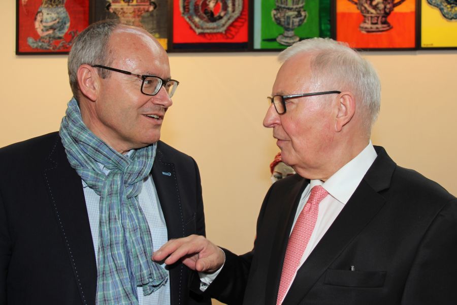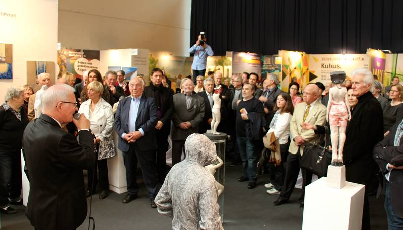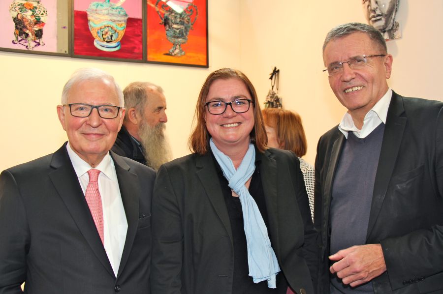 Sehr herzlich begrüßte Klaus Lindemann unter den zahlreichen Ehrengästen den ehemaligen Oberbürgermeister und Ehrenbürger der Stadt Karlsruhe Heinz Fenrich, die Landtagsabgeordnete Marion Gentges, die Mitglieder des Karlsruher Gemeinderates Lüppo Cramer, Dr. Rahsam Dogan, Elke Ernemann, Dr. Albert Käuflein, Parsa Marvi und Bettina Meier-Augenstein. Außerdem die Leiterin des Stadtamts Durlach Alexandra Ries, den Leiter der Landesvertretung in Brüssel Johannes Jung, den ehemaliger Baden-Württembergische Wirtschaftsminister Dr. Hermann Schaufler sowie die Künstlerinnen und Künstler der Majolika Sabine Brand Scheffel, Hirofumi Fujiwara, Uta und Peter Gautel, Barbara Jäger, Hannelore Langhans, OMI Riesterer, Franziska Schemel, Eva Schaeuble und Stephanie Marie Roos.
