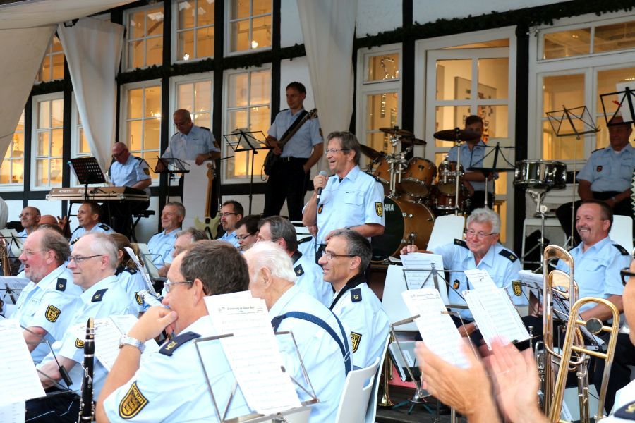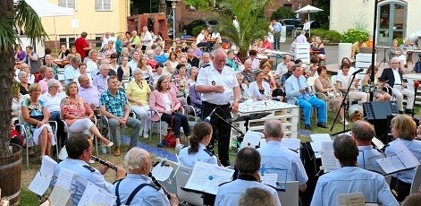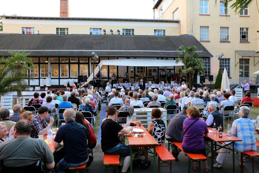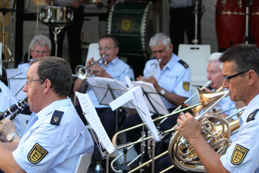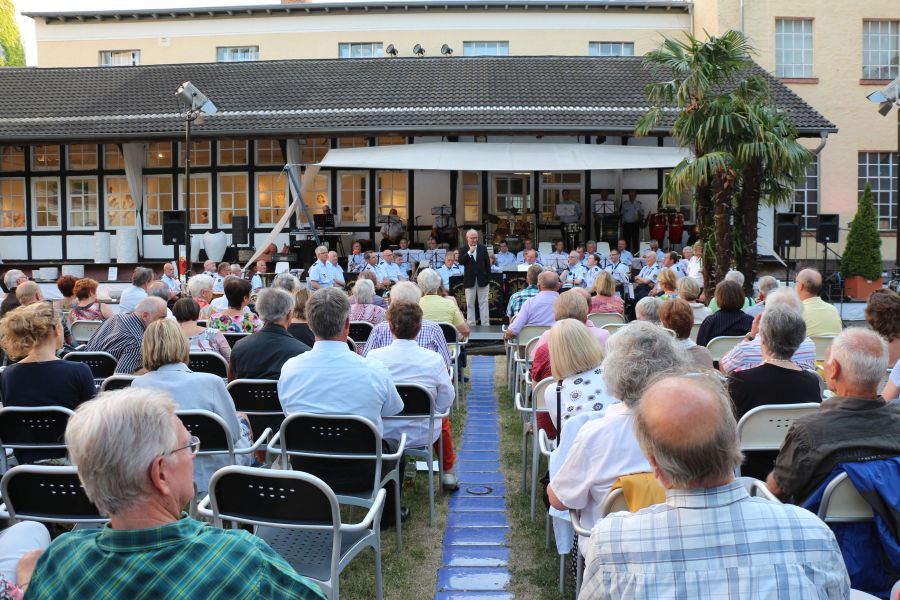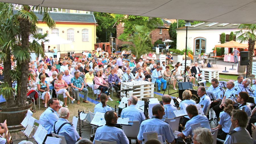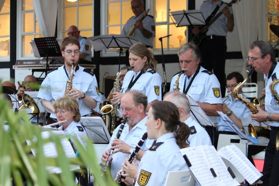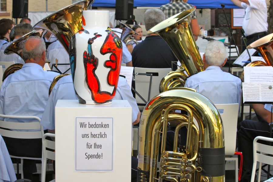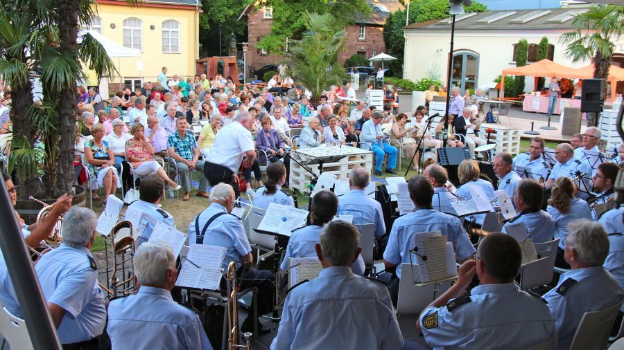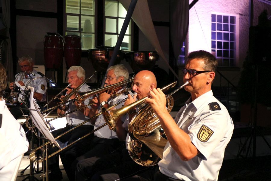 Auch das zweite Benefizkonzert des ebenso renommierten wie beliebten Polizeimusikkorps Karlsruhe zugunsten der Majolika-Stiftung im mediterranen Innenhof der Majolika Manufaktur am Ahaweg fand beim Publikum begeisterten Zuspruch. Auch die Presse war voll des Lobes für den wunderschönen Musikabend unter freiem Himmel.