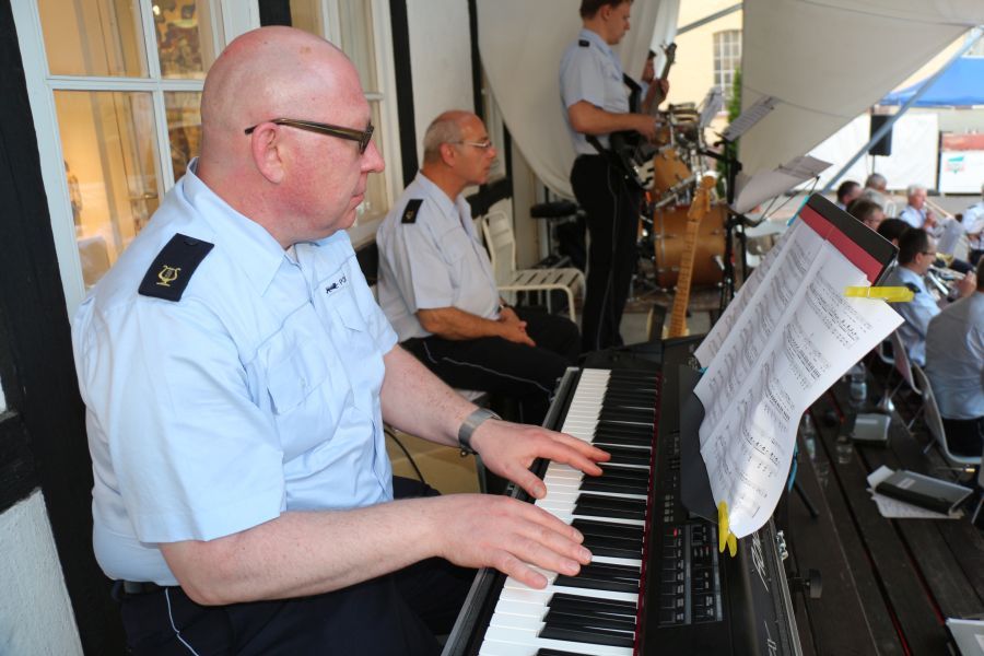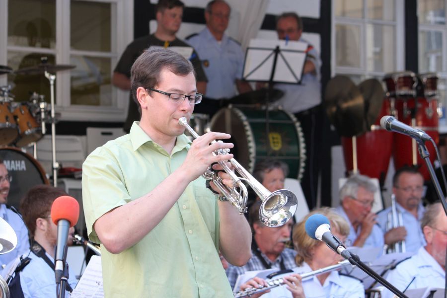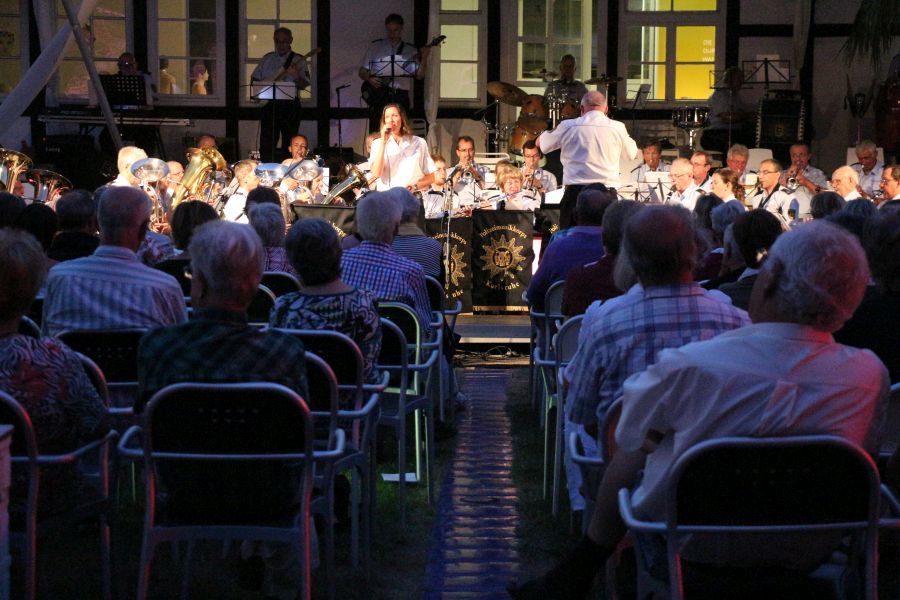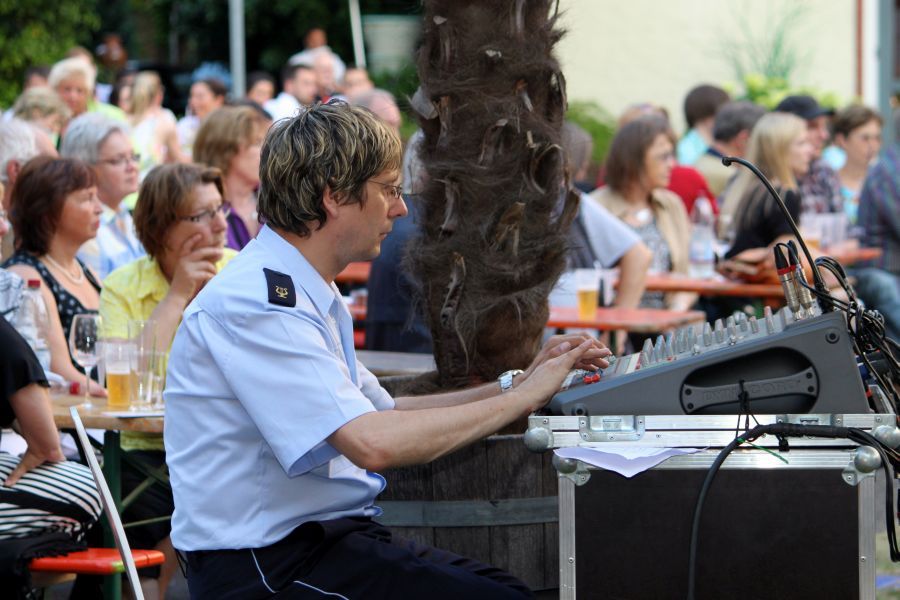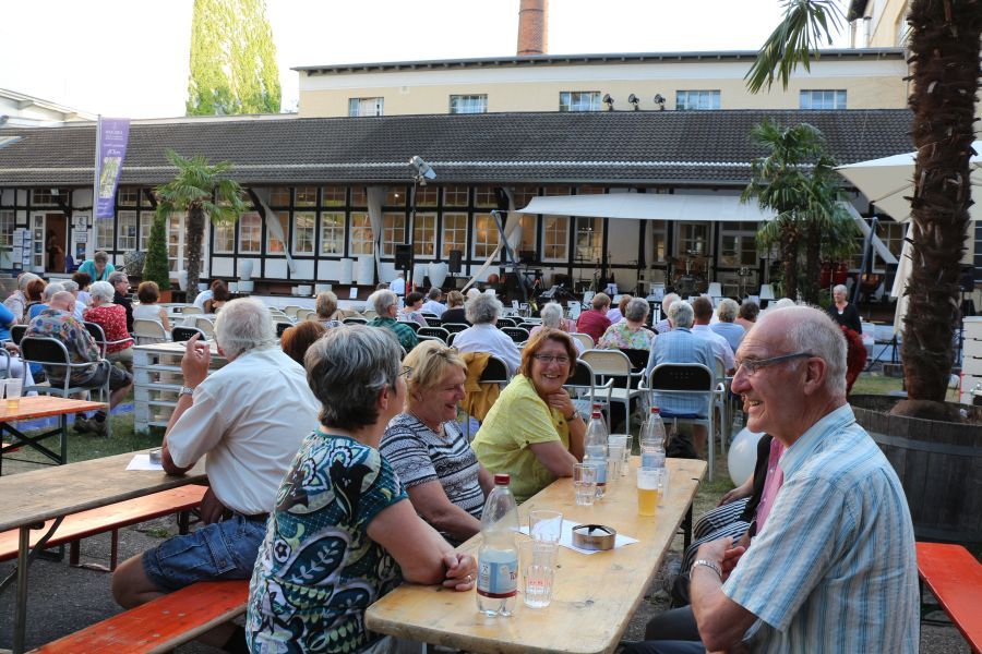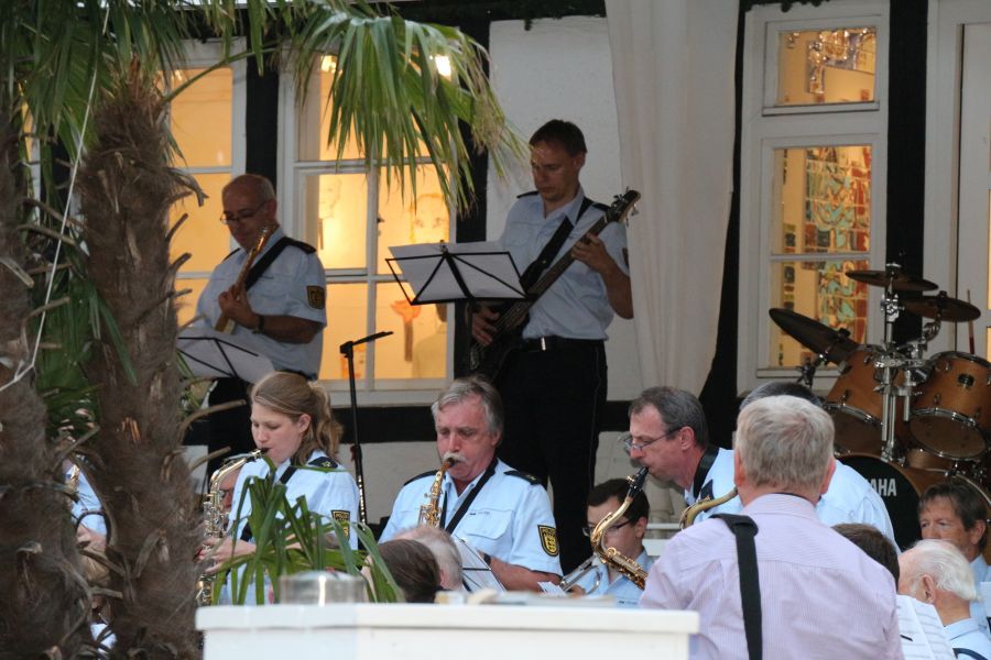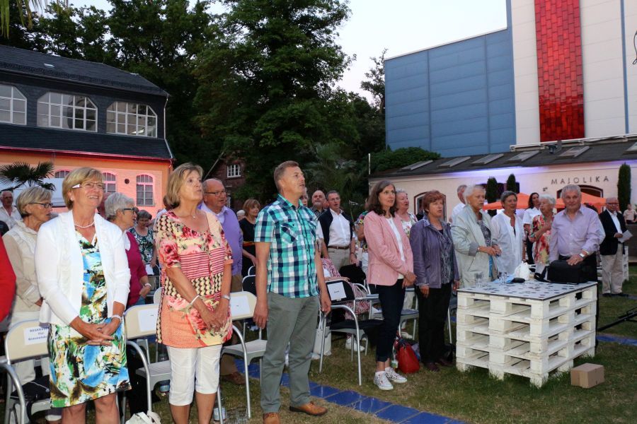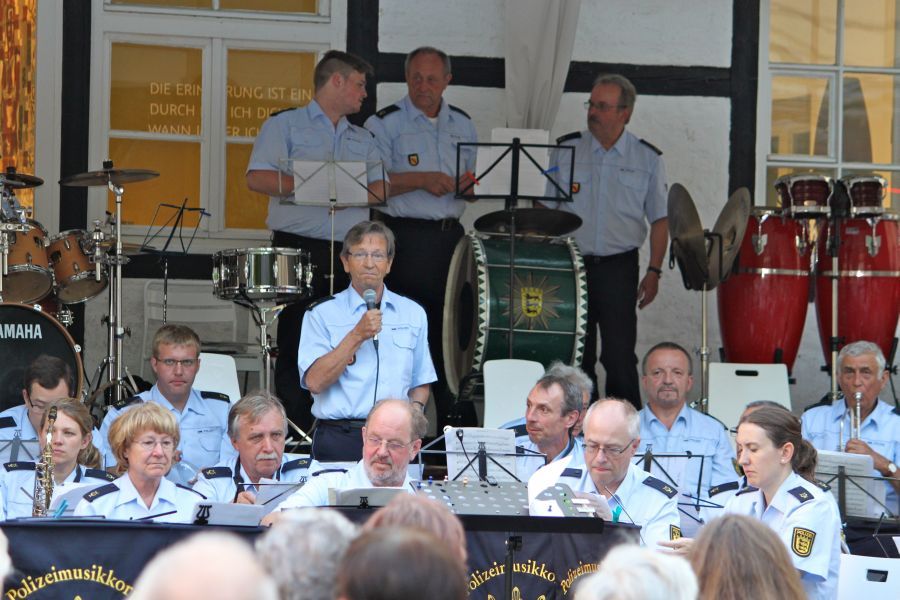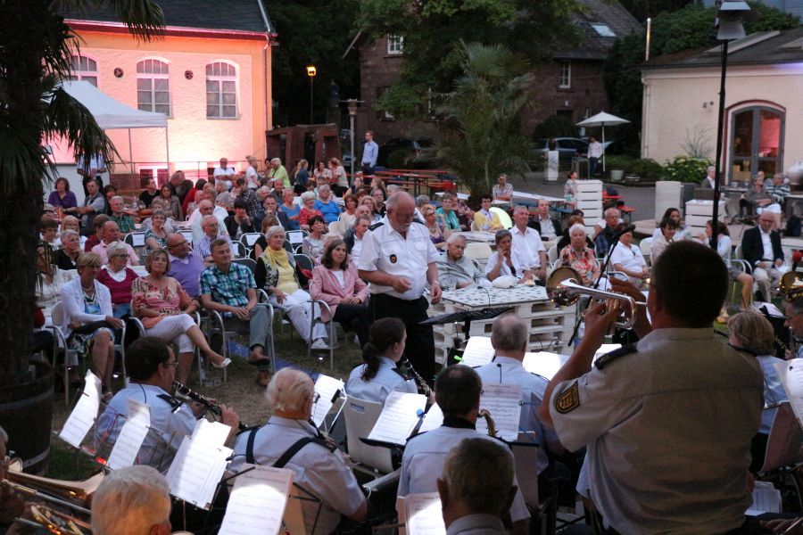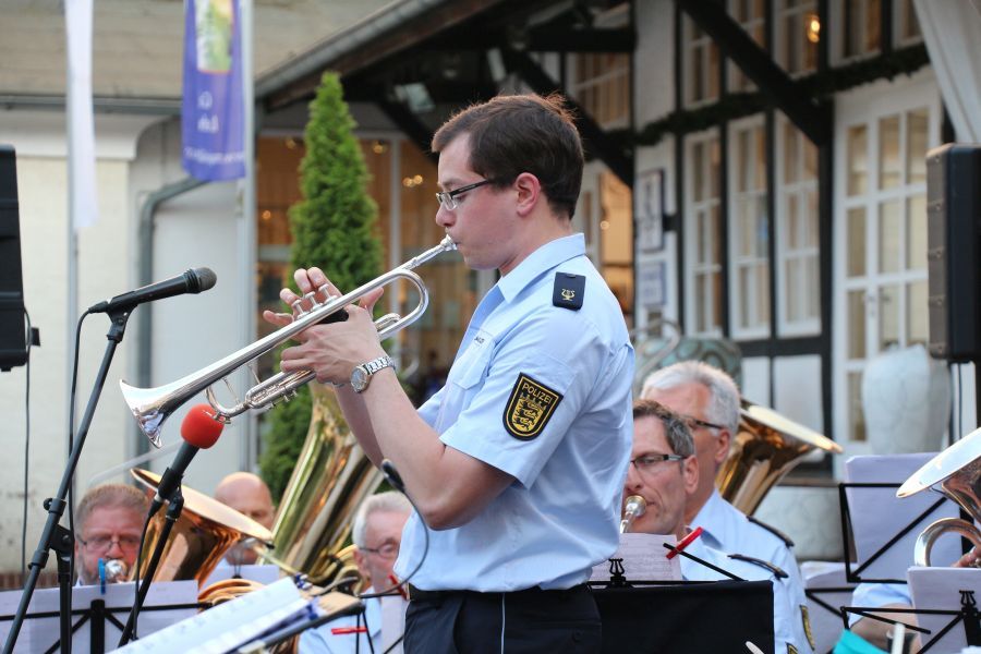 Auch das zweite Benefizkonzert des ebenso renommierten wie beliebten Polizeimusikkorps Karlsruhe zugunsten der Majolika-Stiftung im mediterranen Innenhof der Majolika Manufaktur am Ahaweg fand beim Publikum begeisterten Zuspruch. Auch die Presse war voll des Lobes für den wunderschönen Musikabend unter freiem Himmel.