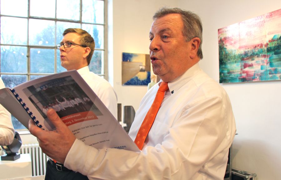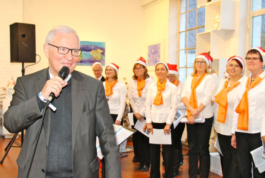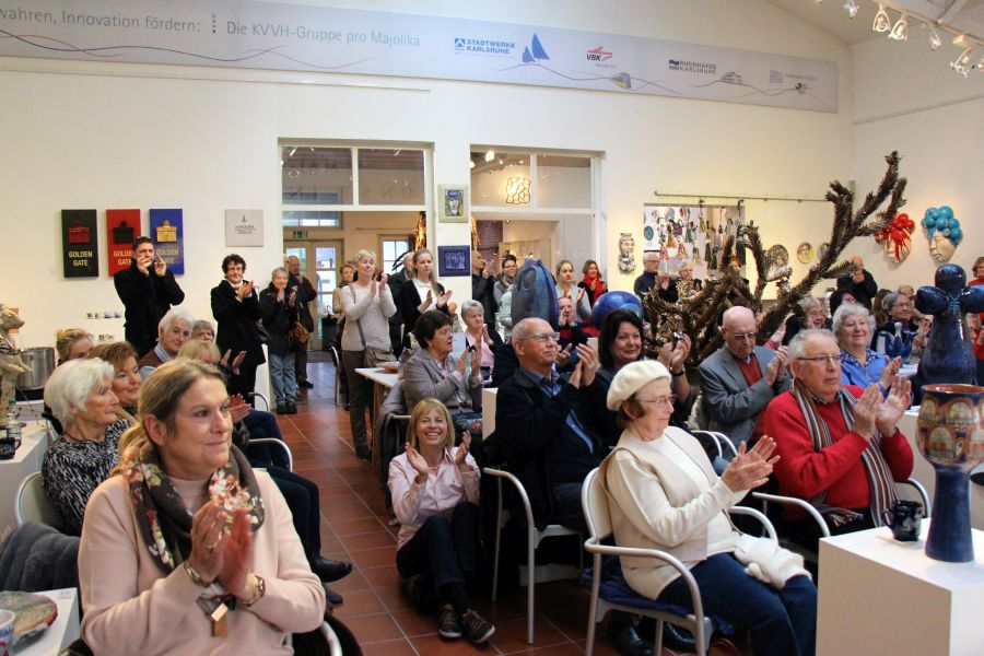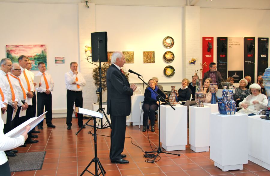 In seiner kurzen Begrüßung hatte der Vorsitzende des Aufsichtsrates der Majolika GmbH Klaus-Dieter Rohlfs die zahlreichen Gäste willkommen geheißen und dem Chor für sein konzertantes Weihnachtsgeschenk gedankt. Sehr angetan von dem erneuten Gastspiel in der Majolika zeigte sich auch der Vorstand der Majolika-Stiftung Klaus Lindemann der einen besonderen Dank an Gerhard J. Rastetter richtete, der nicht nur ein exzellenter Dirigent, sondern auch ein sehr engagiertes Mitglied im Aufsichtsrat der Majolika sei. Ehrengast des vorweihnachtlichen Konzerts war der Karlsruher Ehrenbürger und langjährige Oberbürgermeister Professor Dr. Gerhard Seiler, der mit seinem Besuch seine besondere Verbundenheit zur Majolika auch bei diesem Anlass zum Ausdruck brachte.