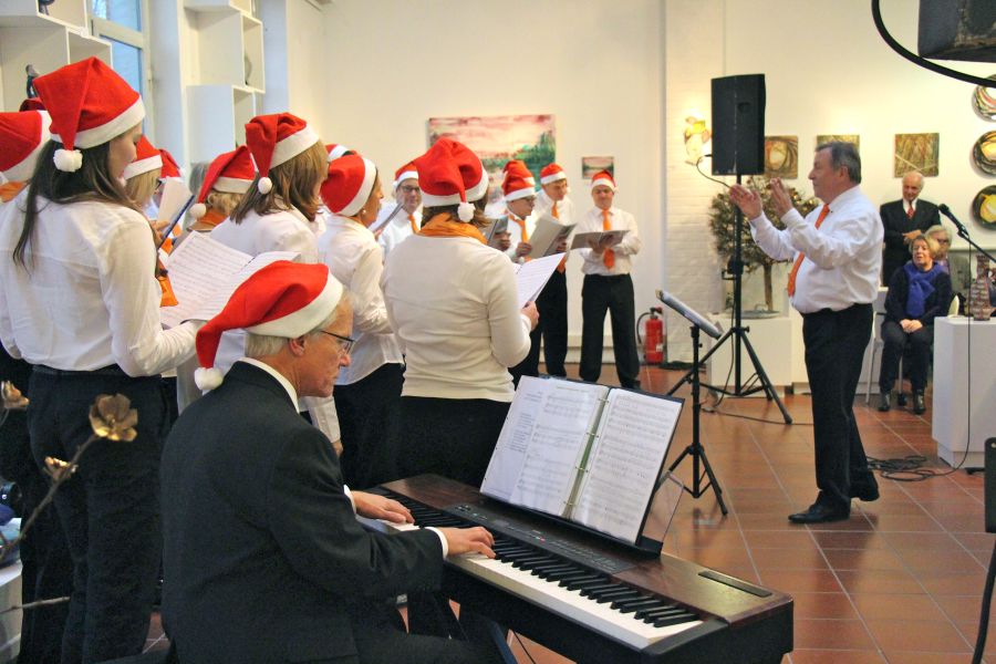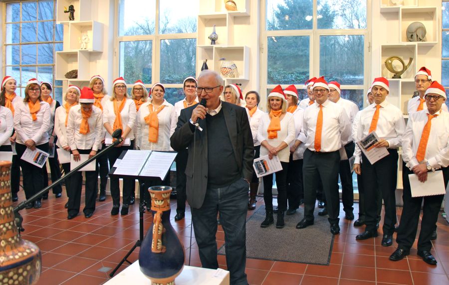 Zu einem wunderschönen, adventlichen Chorkonzert hatte die Majolika-Stiftung für Kunst- und Kulturförderung in die weihnachtlich geschmückte Majolika Manufaktur am Ahaweg eingeladen. Zu Gast war erneut der beliebte gemischte Chor der Karlsruher Volksbank, der 2003 von seinem Dirigenten Gerhard J. Rastetter gegründet wurde und dem inzwischen rund fünfzig Sängerinnen und Sänger aus den verschiedenen Abteilungen der Bank angehören. Auch der Vorstand singt mit.