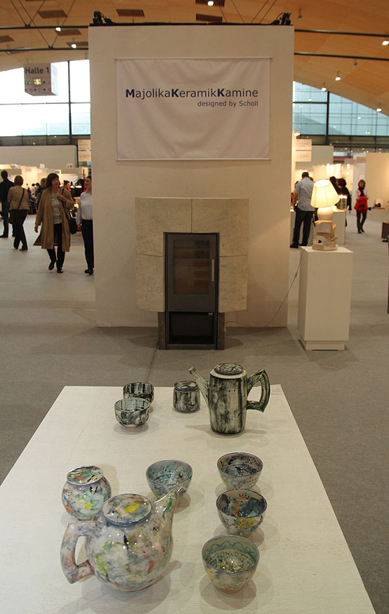 Neben Tischen, Tellern, Tassen, Schalen, Vasen und Figuren sorgte eine Novität am Majolika-Stand für besondere Aufmerksamkeit: das neue Keramikofen-Programm der Majolika. Schlicht, schick, modern und funktional: so sind die neuen „Kachelöfen“ – echtes Majolika-Design vom Feinsten.