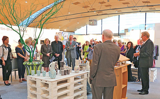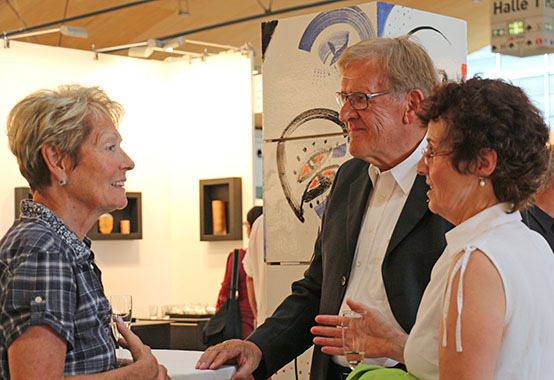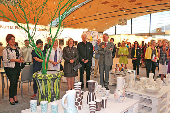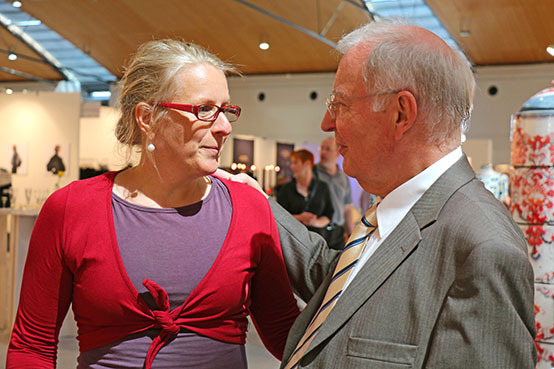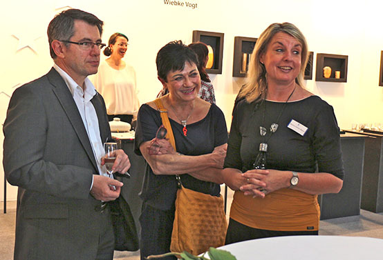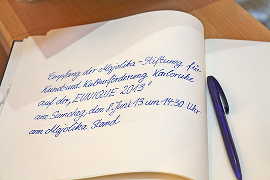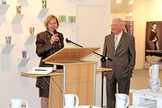 Bei seiner Begrüßung unterstrich Klaus Lindemann die Bedeutung der Majolika als einzigartige Keramik-Kunst-Werkstatt, die gleichermaßen der Tradition wie der künstlerischen Innovation verpflichtet sei. Die Vorstandssprecherin der KMK Britta Wirtz hob die gute Zusammenarbeit mit der Majolika hervor und freute sich, dass die Eunique sich inzwischen außerordentlich gut entwickelt hat.
