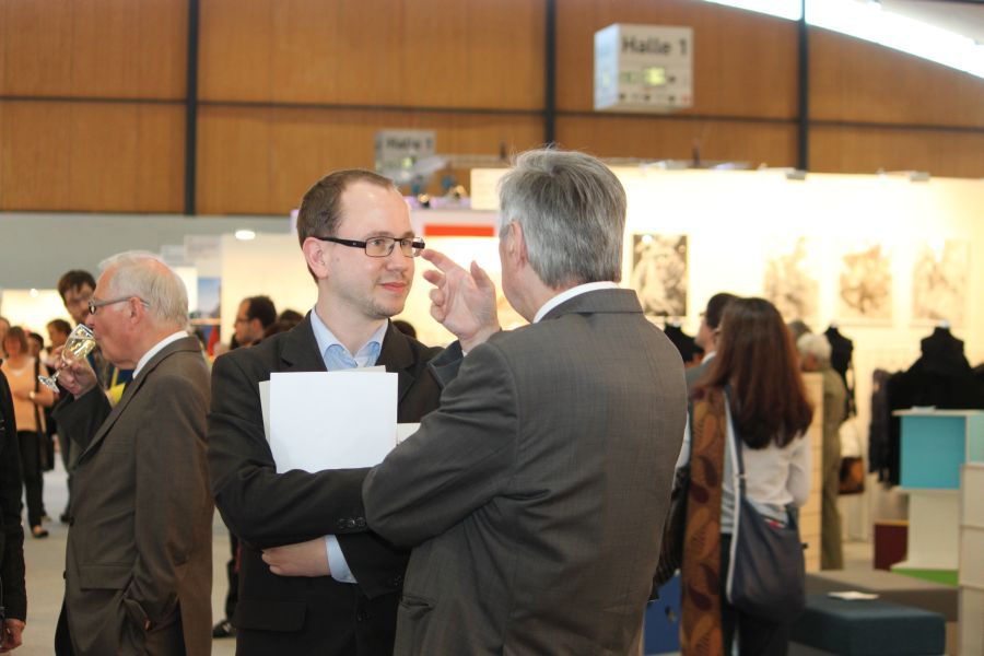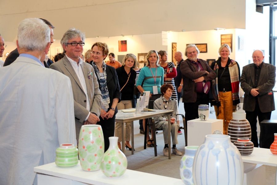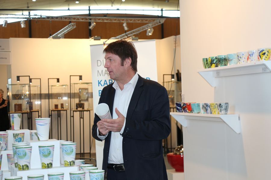 Beim traditionellen Stiftungsempfang hob Stiftungsvorstand Klaus Lindemann das leistungsstarke Kreativpotential und das hohe Niveau der künstlerischen Arbeit der Karlsruher Keramik-Kunst-Werkstatt hervor. Bei Britta Wirtz, der Sprecherin der Geschäftsführung der Karlsruher Messe, die in ihrem Grußwort auf die sehr erfolgreiche Arbeit der Messe einging, bedankte sich Klaus Lindemann für die gute Zusammenarbeit.