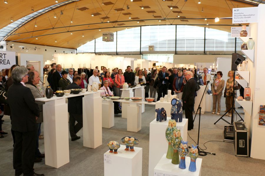 Karlsruhe hat zwei Messen im Veranstaltungskalender, die auch für die Majolika von besonderem Interesse sind: Anfang März die von Jahr zu Jahr beliebter werdenden „art Karlsruhe“ und im Mai die „Eunique“. Während die „art“ eine Verkaufsmesse der Galeristen für Sammler und Kunstfreunde ist, präsentiert die „Eunique“ kunsthandwerkliche Arbeiten renommierter Firmen aus den Bereichen Angewandter Kunst und Design. Mit gutem Erfolg beteiligt sich die Majolika Manufaktur seit Jahren an beiden Messen.