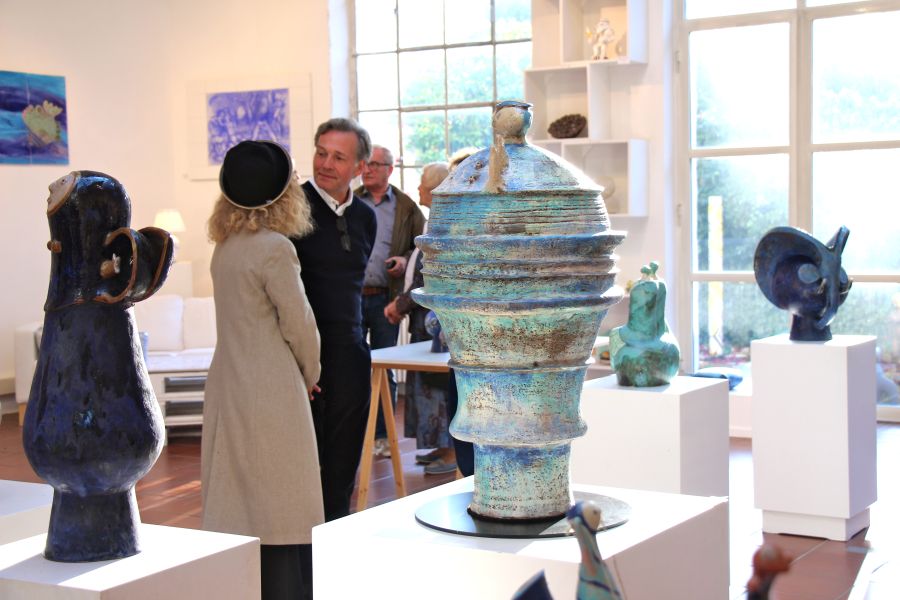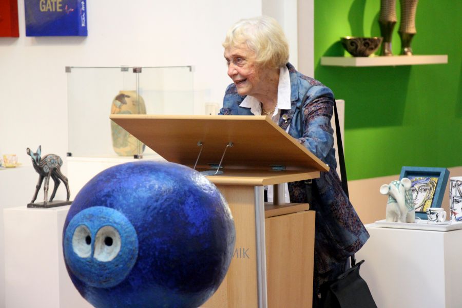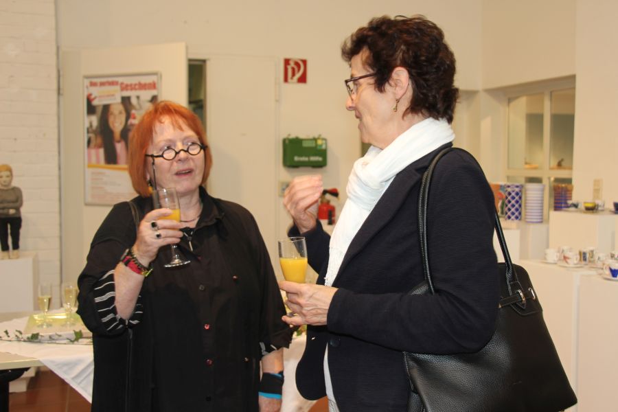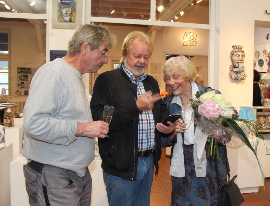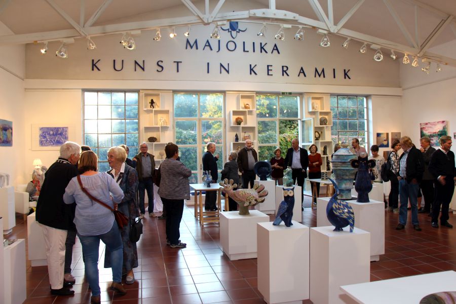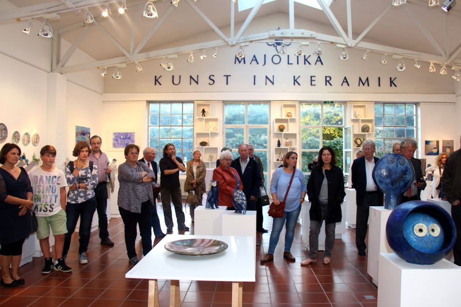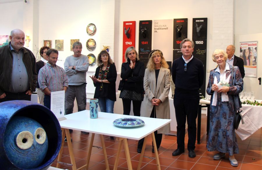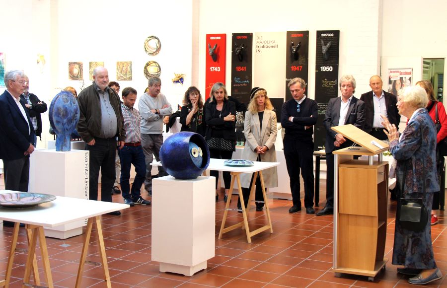 Bei der Vernissage zur Ausstellung erinnerte die langjährige frühere Geschäftsführerin der Majolika Helga Witkowski an die stets so angenehme und wertvolle Zusammenarbeit mit der Künstlerin Eva Fritz-Lindner. Unter den Gästen der Vernissage war auch der Sohn der Künstlerin Thomas Fritz.