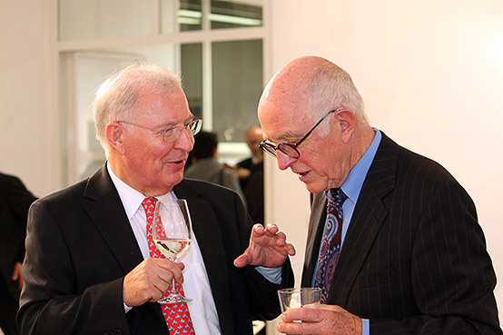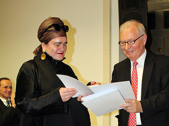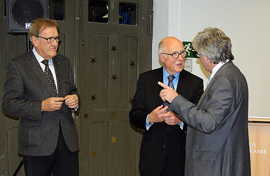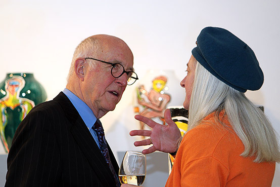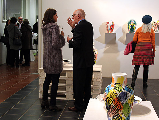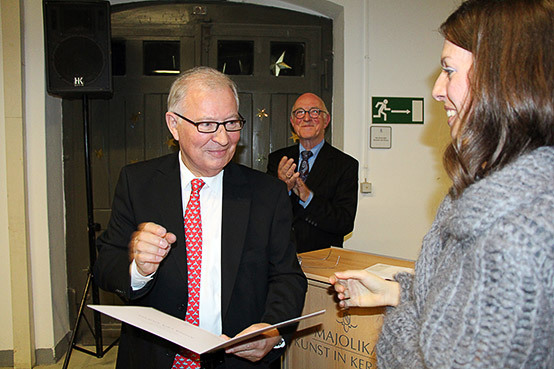 In seiner Laudatio hob der Vorsitzende des Kuratoriums der Majolika-Stiftung Professor Dr. Klaus Gallwitz die besondere Bedeutung der Keramik-Arbeiten im Werk der beiden Preisträgerinnen hervor.