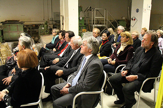 Nicht in einem stilvoll dekorierten, blumengeschmückten Festsaal, sondern in der eher profanen Produktionshalle im Erdgeschoss der Majolika Manufaktur fand die Preisverleihung statt. Das ungewöhnliche Ambiente hatte seinen besonderen Reiz und war von der Majolika-Stiftung bewusst gewählt worden. Man wollte zeigen, wo die wunderschönen Majolika-Arbeiten entstehen. Die in Deutschland einzigartige Karlsruher Keramik-Kunst-Werkstatt sollte gewissermaßen optisch und emotional erfahrbar gemacht werden. Gerade auch an diesem Abend.