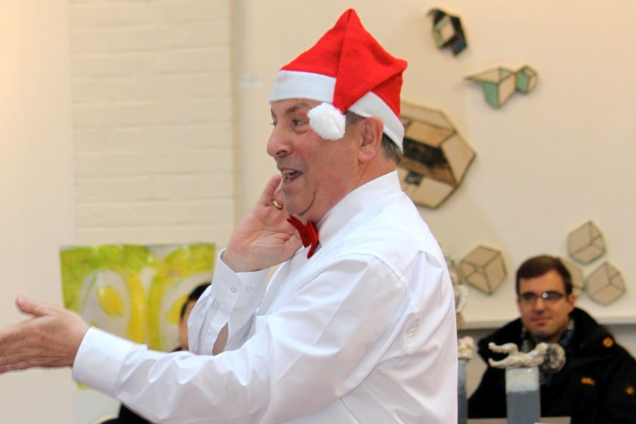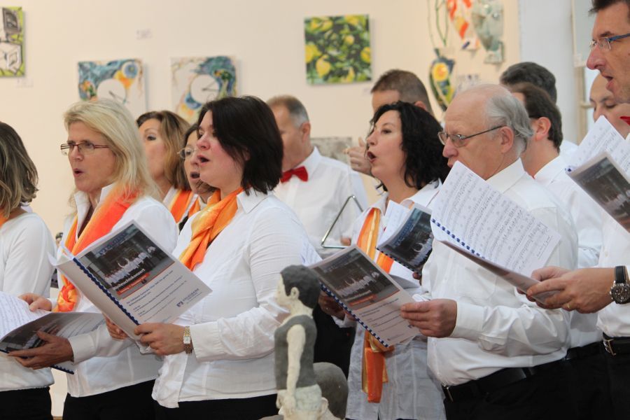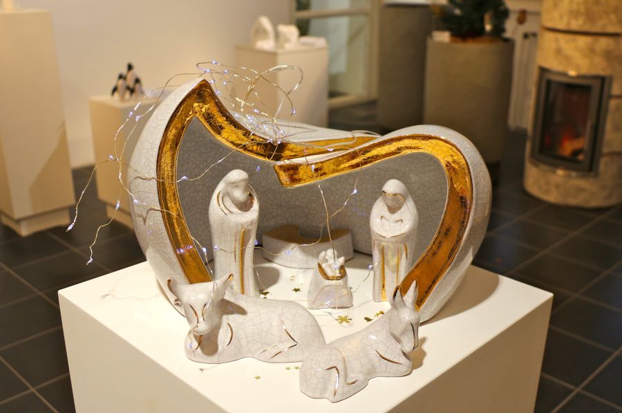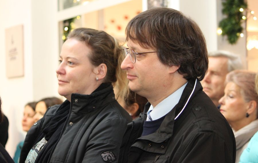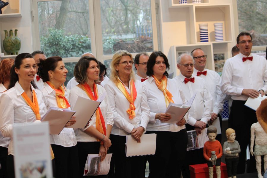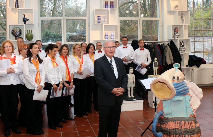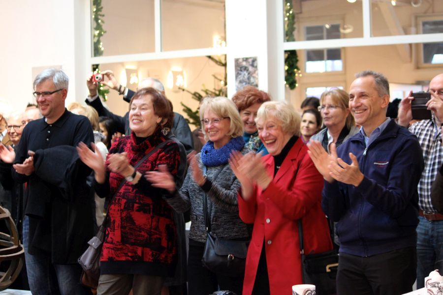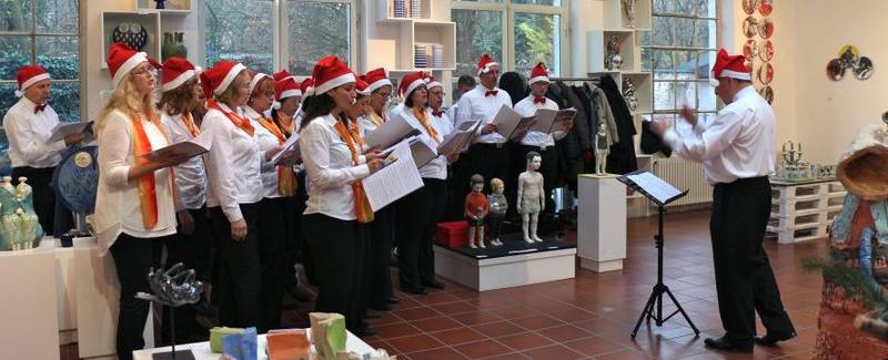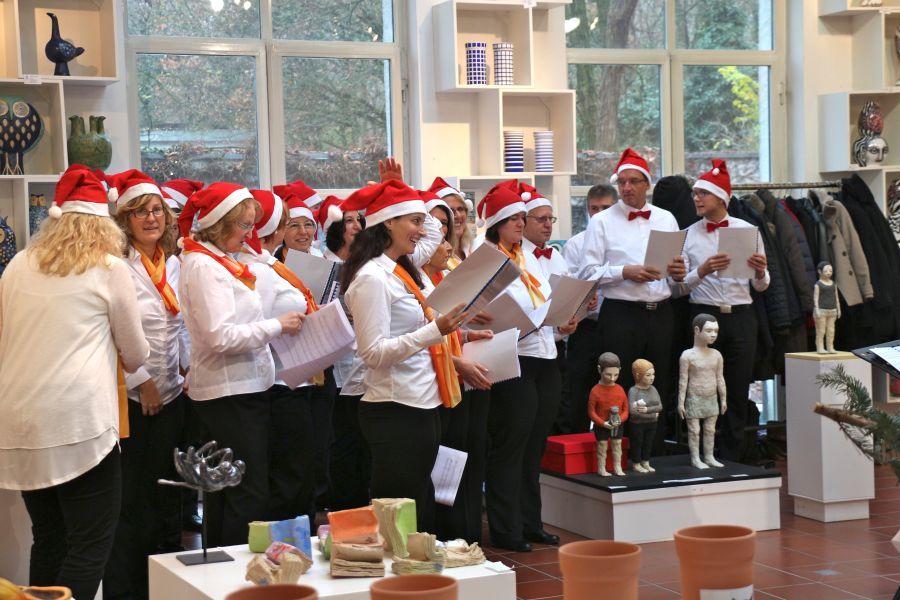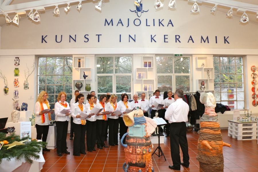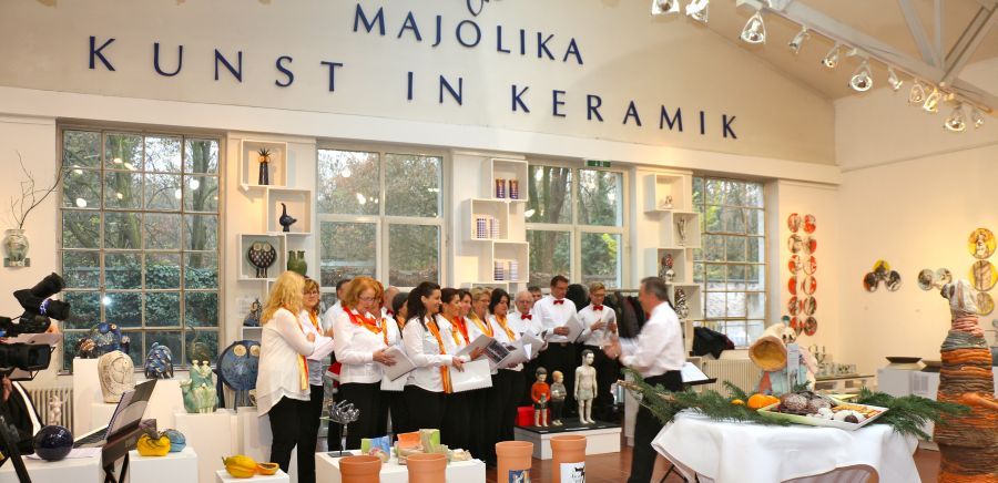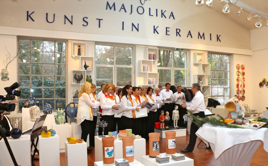Gerne nutzten die zahlreichen Gäste die Gelegenheit, die festlich dekorierte Weihnachtsausstellung zu bewundern und für den Gabentisch noch einige besonders schöne Majolika-Präsente zu erwerben. Musikalisch umrahmt wurde die Veranstaltung vom begeistert gefeierten Chor der Volksbank Karlsruhe unter der ebenso souveränen wie schwungvollen Leitung seines Dirigenten Gerhard J. Rastetter.