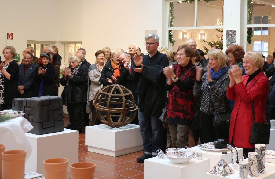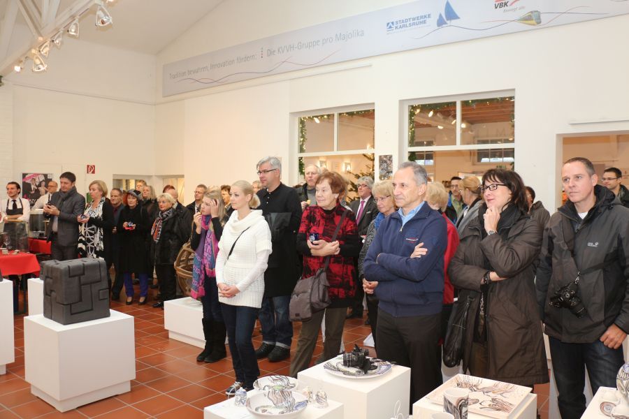In seiner Grußadresse hob Stiftungsvorstand Klaus Lindemann die außerordentliche Bedeutung der Karlsruher Majolika unter den Keramik-Kunst-Werkstätten Europas hervor und wies auf die lange Tradition und die wechselvolle Geschichte der Manufaktur hin. Seit 1901 würden hier von namhaften Künstlerinnen und Künstlern der verschiedenen Stilrichtungen wunderschöne Arbeiten gefertigt, die an vielen Orten der Welt hoch geschätzt werden. Für die Stiftung, die seit 2011 alleinige Eigentümerin der Manufaktur ist, gelte es als oberstes Ziel diese wichtige Kulturinstitution der Fächerstadt in eine gute Zukunft zu führen. Auch zum 300. Geburtstag der Stadt 2015 werde die Majolika etwas ganz Besonderes kreieren.