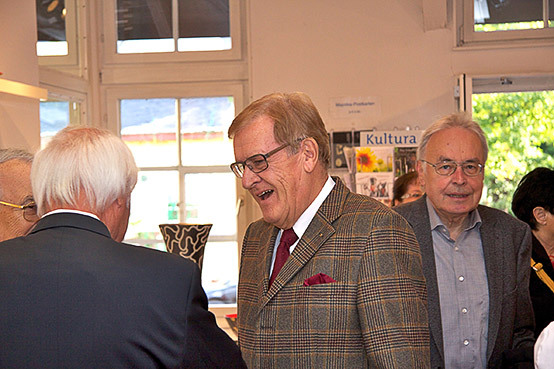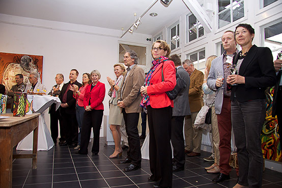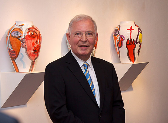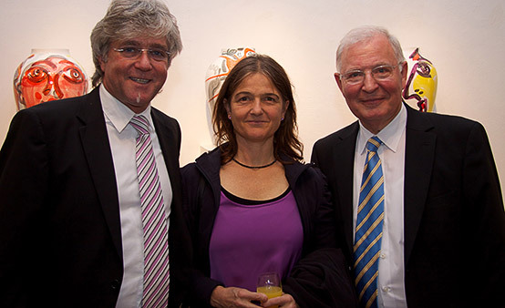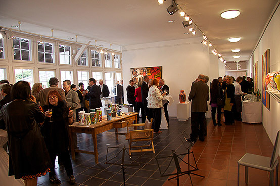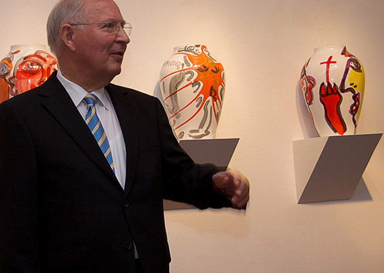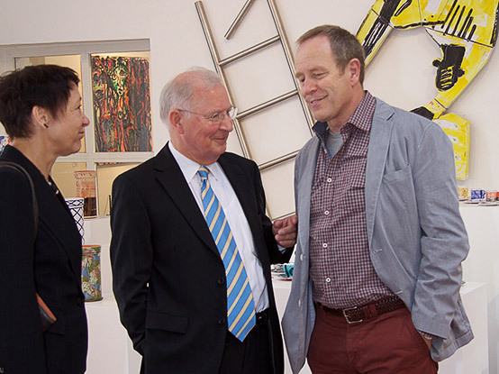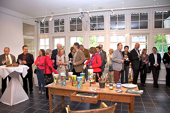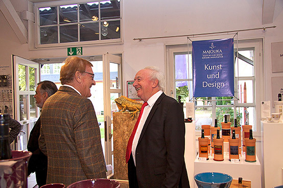 Bei herrlichem Spätsommerwetter konnte der Stiftungsvorstand Klaus Lindemann zahlreiche Gäste aus Politik, Kunst, Kultur und Wirtschaft in den Galerieräumen der Majolika Manufaktur begrüßen. Für ein farbenfrohes Ambiente sorgten die ausdrucksstarken Arbeiten, die der Künstler Peter Robert Keil während seines Atelieraufenthaltes in diesem Sommer in der Majolika geschaffen hatte. Unter den Gästen sah man auch die Mitglieder des Gemeinderats Doris Baitinger, Dr. Heinrich Maul, Rainer Weinbrecht und Michael Zeh, die Kulturamtsleiterin Dr. Susanne Asche, Stadtkämmerer Torsten Dollinger, Professor Siegfried Kreiner, Rechtsanwalt Klaus Schroth, Dr. Armin Brendle von der LBBW und Rita Schoch vom Regierungspräsidium. Aus dem Künstlerkreis der Majolika nahmen Edith Baerwolff, Hannelore Langhans, Sybille Onnen, Franziska Schemel, Eva Schaeuble und Johannes Gervé an dem Empfang teil. Der Stiftungsvorstand nutzte die Gelegenheit, um allen Freunden der Majolika für ihre ideelle und finanzielle Unterstützung herzlich zu danken. Einen besonderen Dank richtete er an den Gründungsstifter und Vorsitzenden des StiftungsratsEhrensenator Wolfgang Eichler und an den Vorsitzenden des Aufsichtsrats der Majolika GmbH Klaus-Dieter Rohlfs, die seit vielen Jahre der Majolika in besonderer Weise verbunden sind und die Stiftungsgründung maßgeblich mitgetragen und mitgestaltet haben.