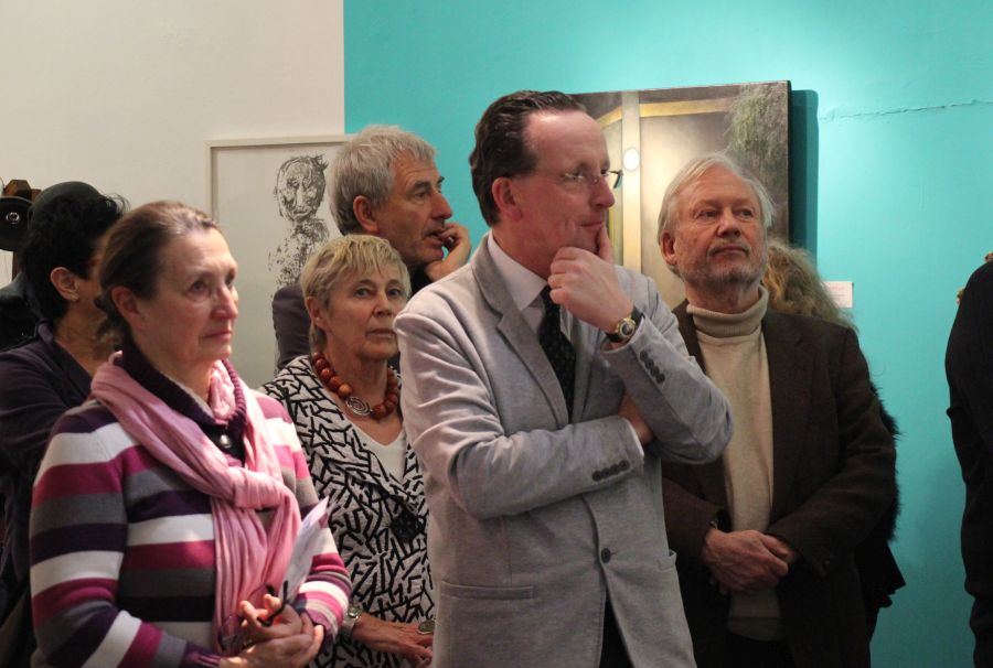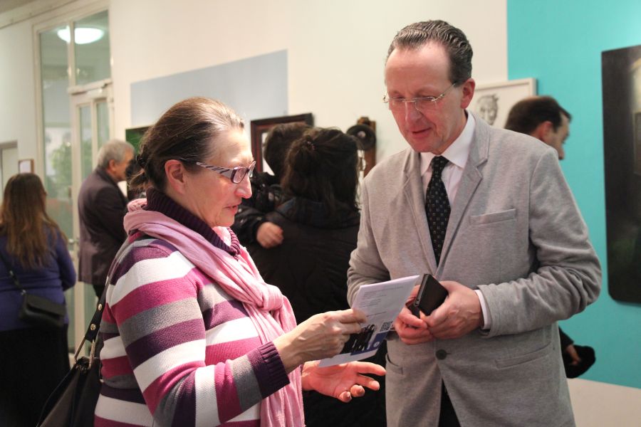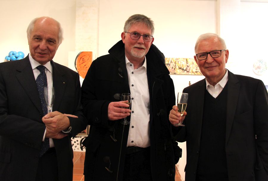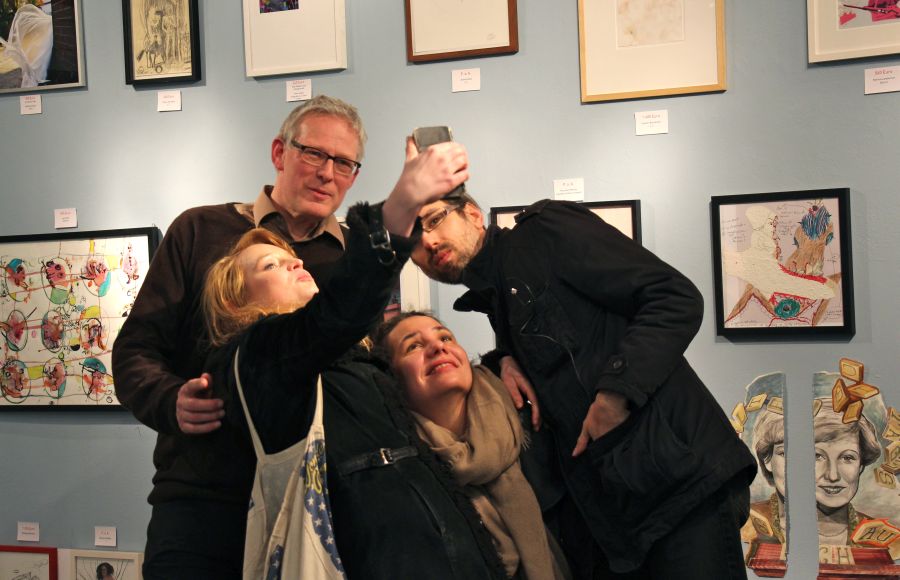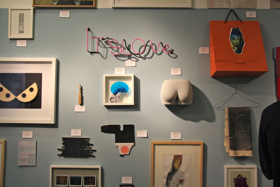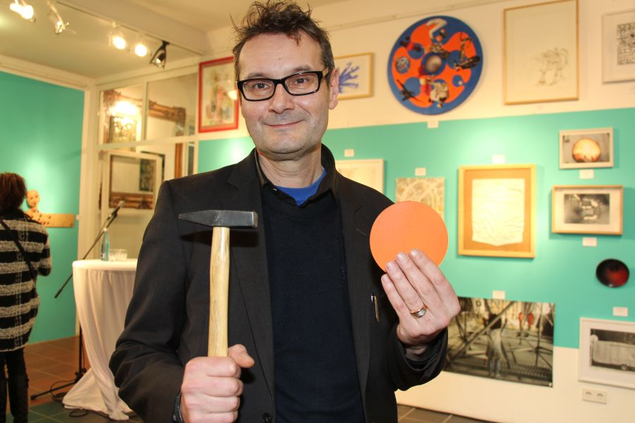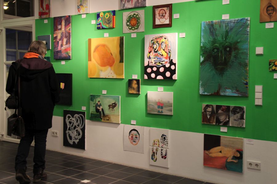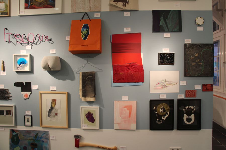 Eine ungewöhnliche Ausstellung präsentierte die Majolika unter dem geheimnisvollen Titel „u.A.w.g.“ parallel zur diesjährigen „art Karlsruhe“ in ihrer Galerie am Ahaweg. Der Ideengeber und Kurator der Ausstellung Thaddäus Hüppi verriet die Auflösung des Kürzels: „Um Ankauf wird gebeten“. Der Titel der ungewöhnlichen Ausstellung war Programm. Präsentiert wurden Gouachen, Collagen, Installationen, Skulpturen, Gemälde, Aquarelle und Zeichnungen. Allerdings wurden nicht die Namen der Künstlerinnen oder der Künstler hervorgehoben, sondern der (Kauf-)Preis des Kunstwerkes. Die Spannweite reichte dabei von 100 Euro bis xtausend Euro. Wichtig war den Initiatoren des Ausstellungsexperiments, allein das Kunstwerk auf den Betrachter wirken zu lassen. Der Name der Künstlerin oder des Künstlers sollte bewusst zweitrangig bleiben. Auch die Auswahl der Beteiligten war spannend: namhafte Künstlerinnen und Künstler, Lehrende, Studierende neben völlig Namenlosen, aber künstlerisch ambitionierten Laien.
