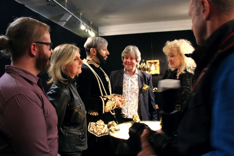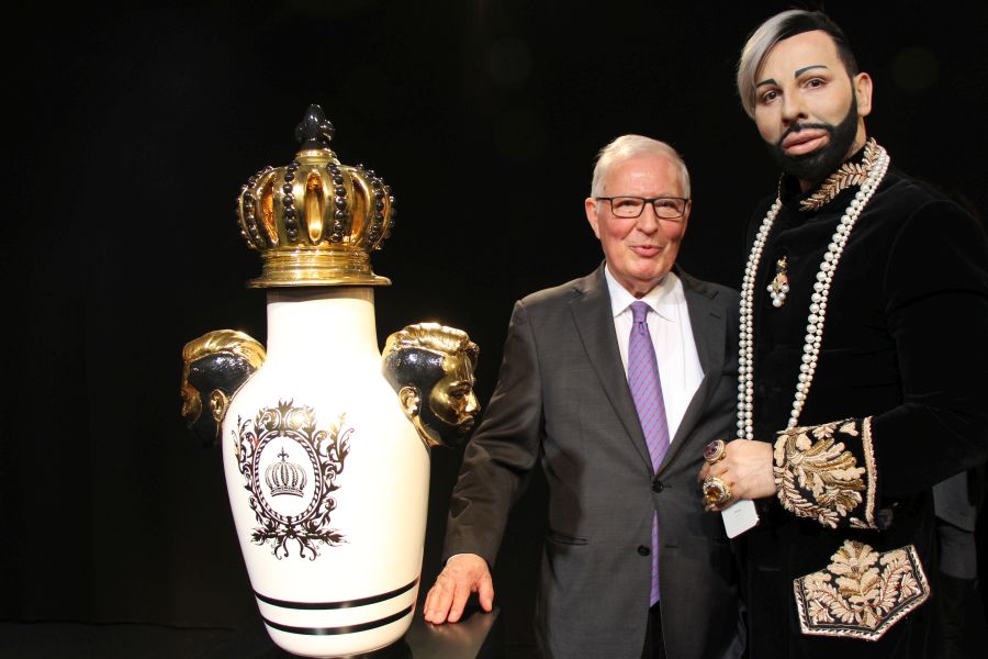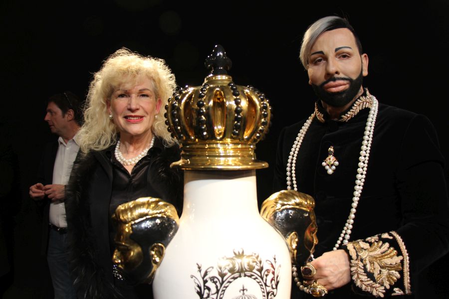 Bei einer Vernissage mit über einhundertfünfzig Gästen führte der ambitionierte, vielgefragte Designer persönlich durch die Ausstellung. In seiner Begrüßungsansprache hatte Majolika-Geschäftsführer Dr. Dieter Kistner Glööckler für die angenehme Zusammenarbeit gedankt und die teilweise von weit angereisten Gästen eingeladen, ein echtes Glööckler-Pompöös-Majolika-Unikat zu erwerben.